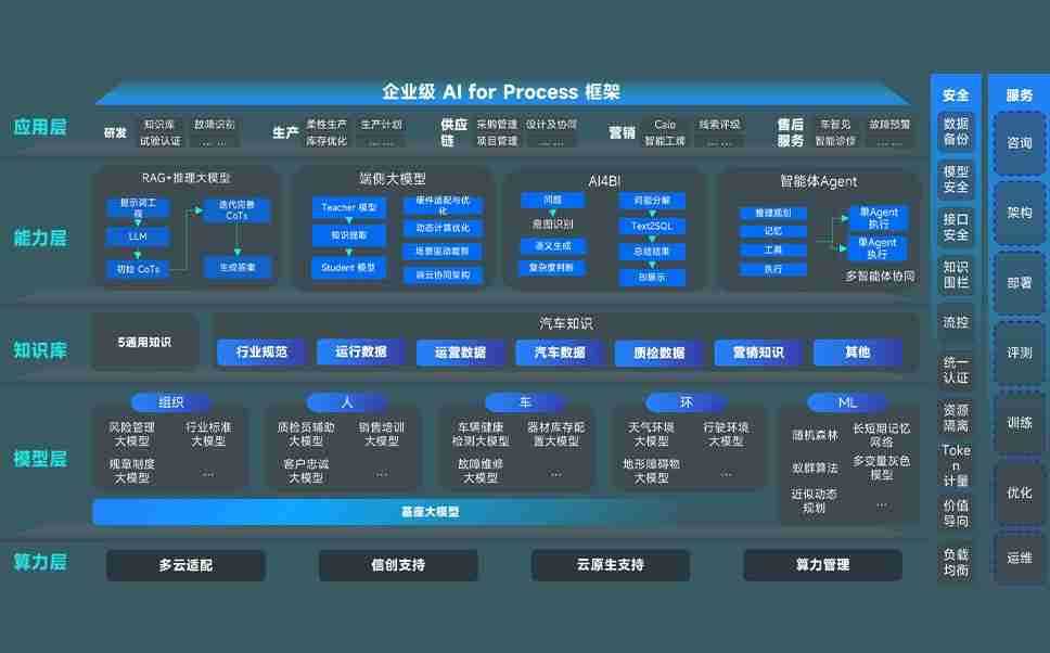 端到端的一站式AI工作空间深度融合了从企业战略规划到日常经营的全流程业务板块,,,,定向解决车企内部领域多、、部门多、、、链条长、、、场景碎片化等难题,,,,支持车企快速构建以AI为核心的生产力写作体系,,实现任务执行与AI能力的无缝集成与交互